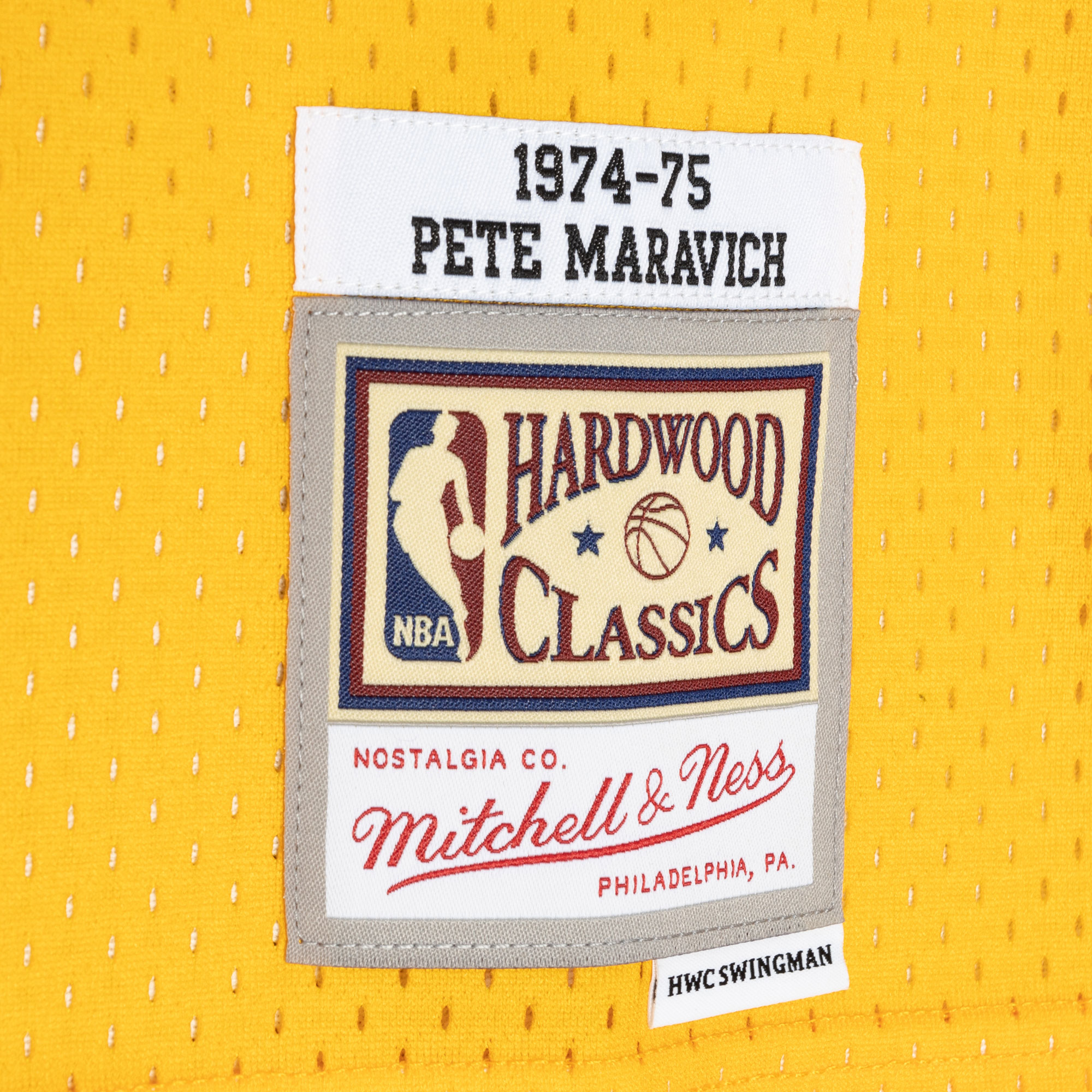 Men's New Orleans Jazz Pete Maravich Mitchell & Ness Purple/Yellow Hardwood Classics 1974/75 Split Swingman Jersey