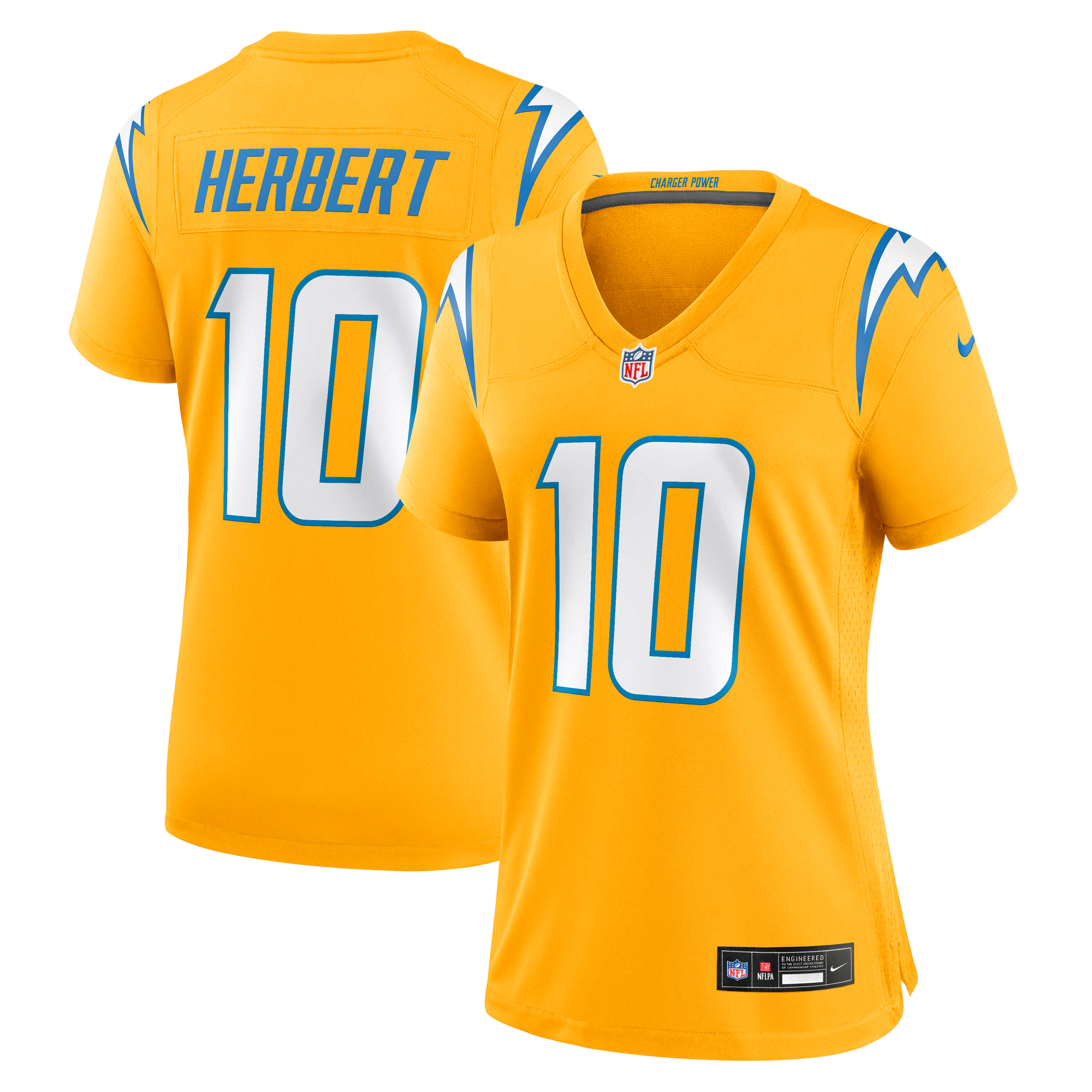 Justin Herbert Los Angeles Chargers Nike Women's Alternate Charger Power Game Jersey - Gold